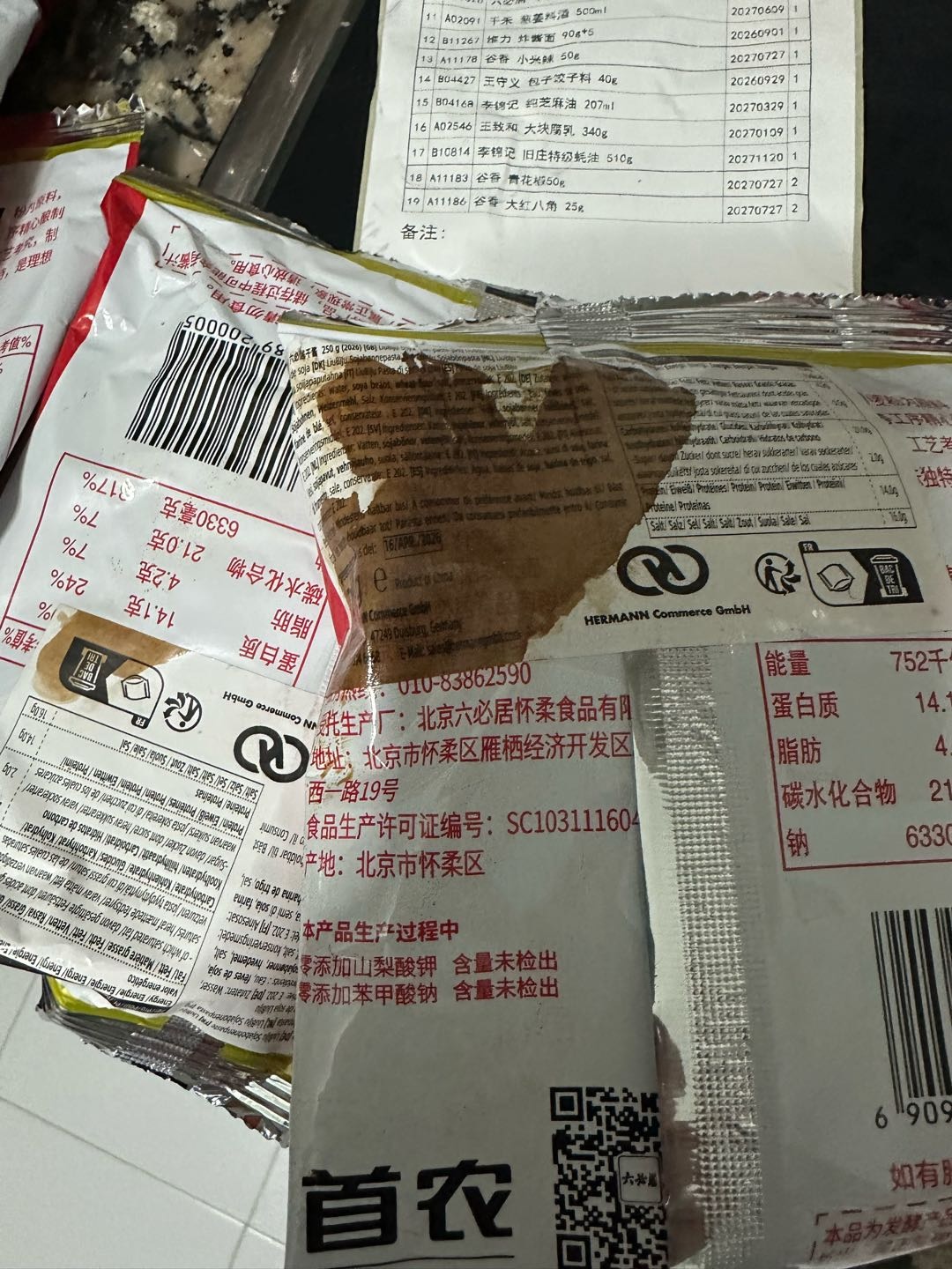 有两袋破损了有两袋破损了 箱子里面都是